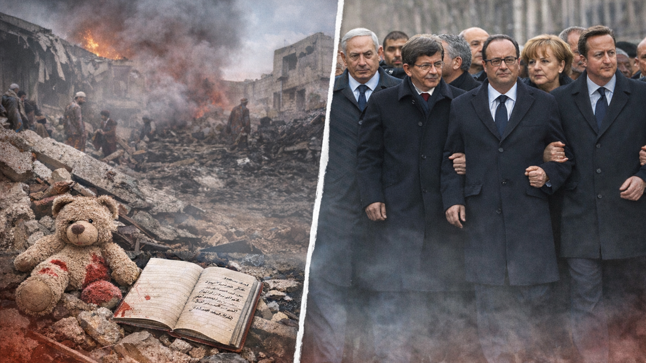 Peki siz bu liderleri hiç Filistin’de, Yemen’de, Suriye’de, Afganistan’da veya bugün İran’da yaşanan ve yüzlerce çocuğun öldüğü terör saldırıları sonrası kol kola yürürken gördünüz mü?